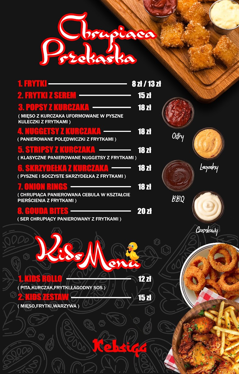 Guests can choose from a variety of options ranging from the compact Rollo Kraftowy Mały to the more generous Rollo Kraftowy Mega, with sides like crispy fries or fresh salads adding balance and texture. For those looking for something wrapped to go, the selection of tortillas with or without cheese offers a convenient and filling choice. The menu also includes small plates such as chicken nuggets and wings, ideal for sharing or pairing with a simple fry portion.